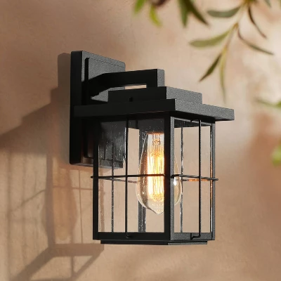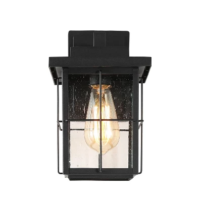 Brighten up your house’s exterior and interior with this classic outdoor wall light by LNC. This black modern outdoor wall lantern light includes one piece of the light fixture. It takes a square-shaped metal structure as the main body and matches the globe seeded glass shade, forming an elegant and harmonious look with a metal structure as a whole. Made from iron and seeded glass in a lovely weather-resistant black finish. With its rectangle design and understated silhouette, this unique one-light outdoor wall light is great for modern, farmhouse, rustic, traditional, or transitional style decor.