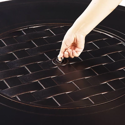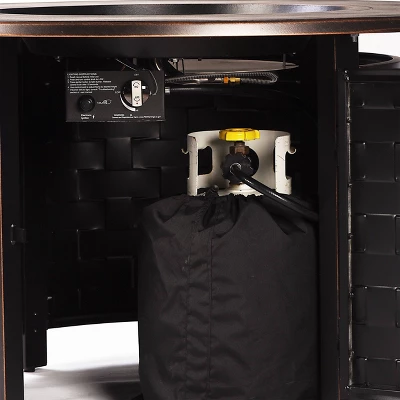 5pc Outdoor Fire Table Set With 44″ Round Fire Table, 4 Deep Seating Swivel Rocking Chairs & Table Fabric Covers – Oakland Living