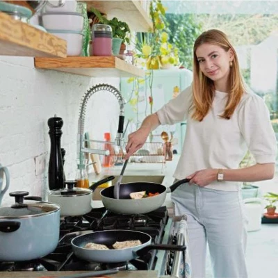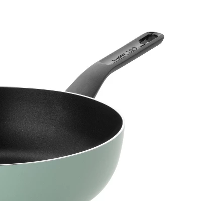Time to enjoy the oriental cuisine and create a crispy wok meal on the dinner table. Just like the frying pans in this range, the wok pan is provided with a high quality non-stick coating to cook with little to no oil and to also ensures you from an easy food release and clean up. The Aluminum wok pan heats up quickly and provides an even heat distribution on any kind of stovetop. The wok pan is equipped with a glossy phenolic resin handle and can be combined with the 11″ glass lid with phenolic resin knob from this LEO Pressed sage and slate range.