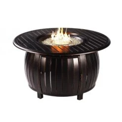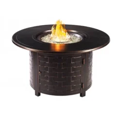 5pc Set With 44″ Outdoor Aluminum Round Fire Table & 4 Deep Seating Swivel Rocking Chairs & Wind Blocker Lid – Oakland Living