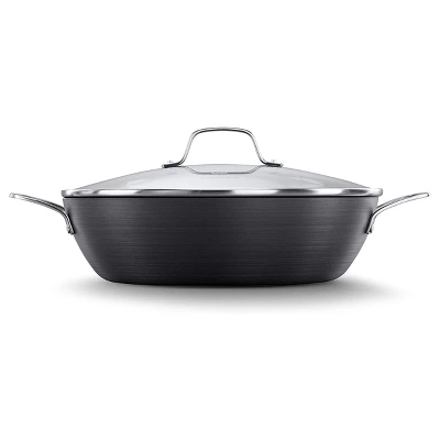 The Calphalon Classic Nonstick 12-Inch All Purpose Pan is made with dual-layer nonstick for extra-easy food release and cleanup, and constructed from durable hard-anodized aluminum for fast and even heating. With its versatile shape and size, this non stick pan is deep enough for frying, sautéing, stir-frying and more. Stainless steel loop handles ensure this pan fits easily in the oven. Includes oven-safe tempered glass lid to help foods retain moisture when cooking.