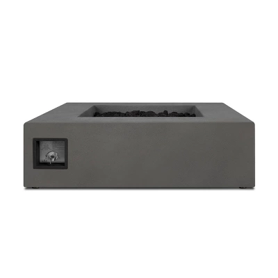 Create your ideal outdoor gathering space with the stylish and versatile design of this square, low-profile fire table. Made in the USA with glass fiber reinforced concrete (GFRC), this table has a simplified silhouette and a weathered, rustic finish, with a brass burner system that produces rich and inviting flames. Complete the look with a matching tank cover that conceals your propane tank and doubles as a side table.