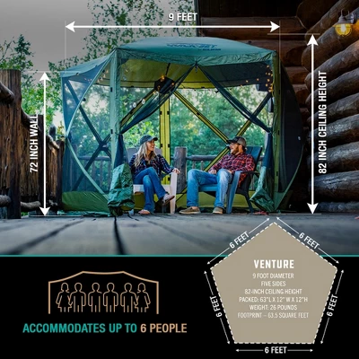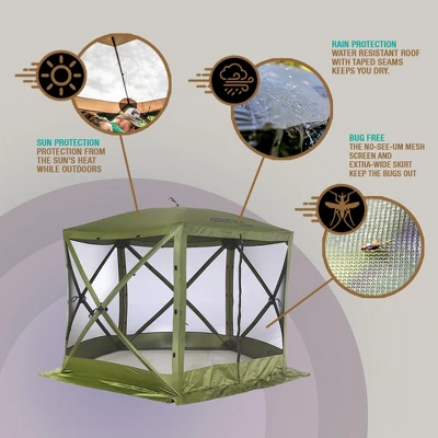 CLAM Quick-Set Venture Portable Pop-Up Outdoor Camping Gazebo Screen Tent Sided Canopy Shelter With Ground Stakes And Carry Bag