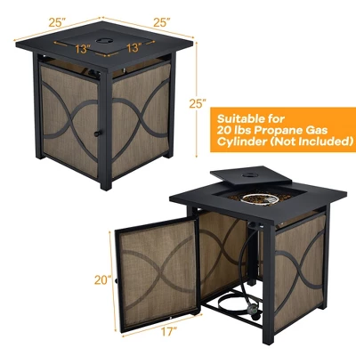 Costway 25-Inch Square Propane Fire Pit Table 40000 BTU W/ Lid, Fire Glass