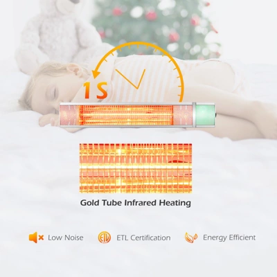 Costway Wall-Mounted Patio Heater 750W/1500W Infrared Heater With 9-Level Adjustable 24H Timer & Remote Control Silver
