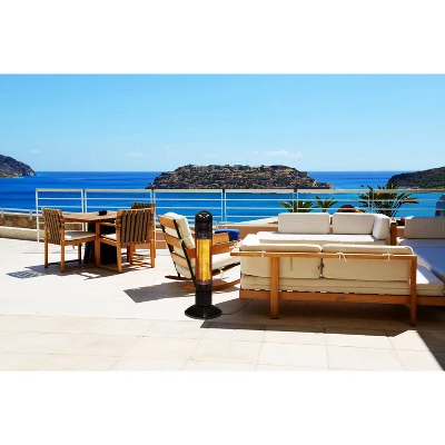 The all season Westinghouse WES31-1200 Electric Infrared Outdoor Freestanding Tower Heater ushers in a new standard in outdoor heating. Focusing the warmth precisely where you want it, this versatile infrared heater is very efficient using radiant heat. Completely safe to use outdoors in all weather conditions, safe to use in enclosed areas, and hardly affected by wind you will have instant warmth year-round. You can use it freely in various places, like the garage, backyard, living room, outdoor bar, restaurant etc. Designed with a highly efficient power adjustable 600 or 1200 Watt infrared heating element and a highly rated aluminium reflector, it distributes heat evenly to provide optimum heating for any terrace or outdoor space with its oscilating base feature. The timer feature let’s you program how long you want ot run the heater. If you are having a party and head in the house, not to worry the heater will shut itself off after the programmed time setting. You can set it to: half, 1, 2 or 4 hours. You can also leave it to run without the timer. No worrying about the cost because the heater is only pennies per hour to operate! The handy remote control lets you manage all of the features at a distance. Set the timer, adjust the heat intensity, turn the oscillatiion feature on or off, and even shut off the heater. The only feature you need to do on the heater itself is turn it on. For safety you cannot activate the heater from the remote, but you can turn it off. The handy LCD screen will show you the features as you activate them. If the unit is knocked over by the wind, kids or even the family pet, it will shut off automatically to prevent any chance of fire. Just stand it back up and turn it on again. The wide base and lightweight nature of this heater makes it difficult to knock over, but accidents happen and this feature will keep you safe even if you are not present. The IP55 rating allows you to leave this unit outside all season long and not worry about dust and water filtering in. If you accidentally spray it while watering flowers or cleaning there will be no harm done to the heater. The oscillating base allows the heater to cover a larger area more effectively and to heat when and how you want it! OSCILLATING BASE – The oscillating base allows the heater to cover a larger area more effectively and to heat when and how you want it!