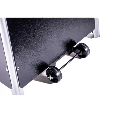- Access door design for propane tank and wheels for easy mobility styled with durable accents – commercial-quality components and a rust, fade and corrosion-resistant finish, along with wheels for portability.