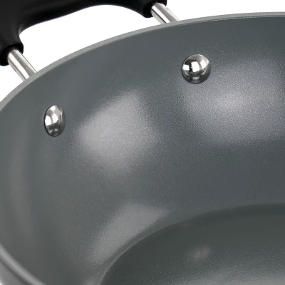 The Kenmore Arlington 11 Inch Nonstick Aluminum Wok in Black Diamond provides quality with exceptional style, durability and versatility. Heavy gauge aluminum construction provides fast, even heating and outstanding performance day after day. The ceramic nonstick cooking surface delivers extraordinary taste for dependable cooking results without added fats and oils. Wow guests with a stunning array of dishes, from sauted veggies to seared meats.