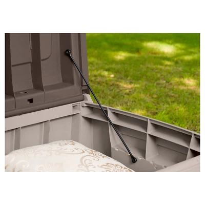 The Keter plastic Novel 90 Gallon Deck Box is both versatile and attractive. Great for convenient outdoor storage, this storage bench enables you to safely keep outdoor entertaining items close to where they will be used on the patio or deck. A colorful cushioned pad can be attached to the top of the lid to transform it into extra outdoor patio furniture.