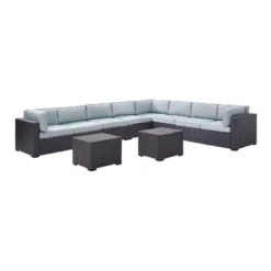 Biscayne 7pc Outdoor Wicker Sectional Set With 2 Coffee Tables – Sangria – Crosley