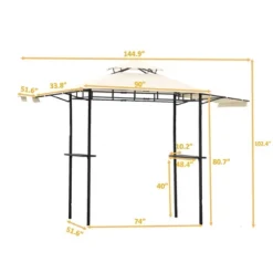 SUGIFT 12 Ft. X 4.3 Ft. Iron Double Tiered Backyard Patio BBQ Grill Gazebo With Bar Counters