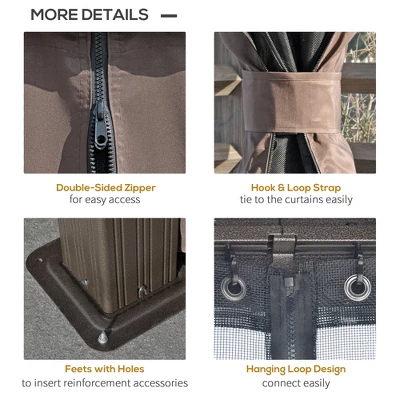 - OUTDOOR OUTINGS THAT DON’T BITE: Use our patio gazebo’s mesh netting to stay cool and enjoy the breeze. Let the good in; keep the bad out. Is the glare still too much to bear? Use the polyester privacy curtains to stop snoopers and ease your eyes (four zipper mesh netting sidewalls and four zipper curtains included).