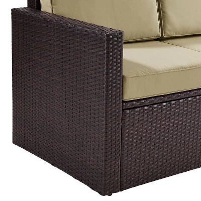 Palm Harbor Outdoor Wicker Sofa In Brown With Sand Cushions – Crosley