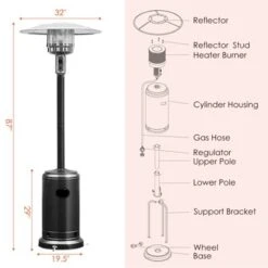Costway 48000 BTU Stainless Steel Propane Patio Standing LP Gas Heater W/ Wheels