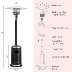 Costway 48000 BTU Propane Patio Heater Standing LP Gas Steel W/ Wheels Black