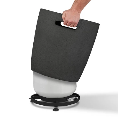 This tank cover is styled to coordinate with the Riverside Gas Fire Bowl and is constructed from durable fiber-cast concrete. The tank cover fits comfortably over a 20 lb. propane tank (not included) and includes tank seat with leveling feet for easy placement. It can also double as a side table. Available in Slate finish.