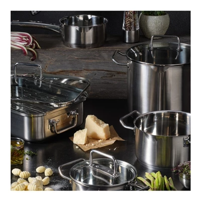 The Rosle Expertiso Low Casserole Pot makes cooking easier and makes everyone an expert in the kitchen. It is ideal for cooking vegetables, roasting meat, or leftovers from the previous day. This pot is made of 18/10 stainless steel and features solid handles. It also comes with a tempered glass lid. It features snouts for easy pouring and letting steam out. Robust, straight-line handles in the pot with distance to the pot offer a secure grip. The pot lid is temperature resistant up to 170-degree-Celcius. It is suitable for the following types of stoves: electric, ceramic, gas, induction, and oven. This pot is dishwasher safe.
