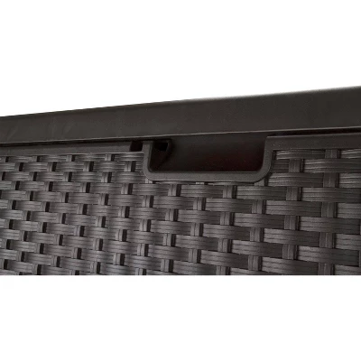 - Deck box designed to store a wide variety of items including gardening tools, athletic equipment, outdoor decor, and more