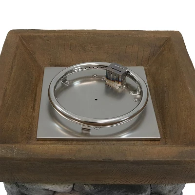 Add warmth and style to the patio, backyard, sunroom, or any other outdoor space in need of a cozy, fun feature with this rock column-inspired, liquid propane, gas fire pit. This unit features a durable and attractive, fiberglass reinforced cast stone construction, as well as an electronic control panel and an ignition switch. The 20 lb LP tank (not included) will be safely out of sight behind the matching panel door so everyone can enjoy the fire pit. Each unit comes with a 10″ diameter, stainless steel burner, a battery for the ignition, a weather-resistant polyester cover, 6 lbs of lava rock, and a 16″ gas hose with a regulator. To use the fire pit once the propane tank is hooked up, push the flame control knob in a counterclockwise rotation to low and then push the igniter button until the flame lights. Easily create cozy memories with friends and family in style and without extra maintenance with this fire pit.