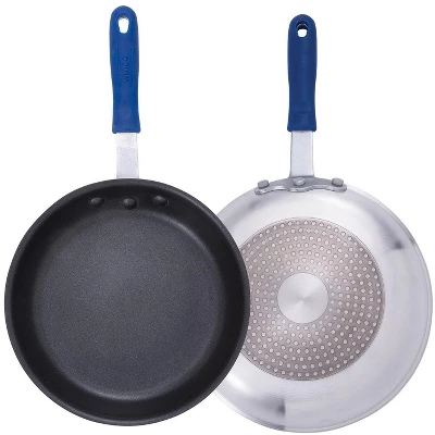 Fry pan; 12 in (Diameter); Aluminum construction; Quantum2 non-stick coating; Stainless steel plates on bottom; Induction cook top and gas range ready; Riveted ergonomic handle; Insulated silicone sleeve stands up to 450°F; PFOA-free; NSF certified; Cash & Carry/retail packaging.