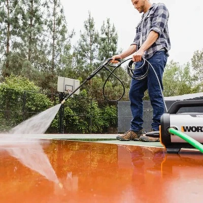 The Worx 13-Amp Electric 1700 PSI Pressure Washer generates enormous cleaning power for dirt and grime removal around the exterior of the home or property. It produces 1870 PSI MAX and 1.2 GPM (1.4 GPM MAX) to make quick work of cleaning the driveway, deck, siding, or brickwork. It’s also a great tool for blasting mud out of outdoor camping or sporting equipment or for muddy cars and SUVs. This pressure washer comes with a turbo nozzle, when you need maximum pressure, say, for brickwork, and a 40-degrees nozzle for when you need a lighter touch. Plus, the universal ¼ in. quick-connect adapter makes switching between nozzles a breeze. But the best part about this portable pressure washer may be that it’s simple to use. Not only does it have an integrated carry-handle that makes it easy to move around the yard, almost anyone can operate all this power. The Worx Electric 1700 PSI Pressure Washer won’t knock you over while still delivering a mighty force of water, thanks to its powerful 13-Amp motor. And when you’re finished pressure washing for the day, onboard storage for the nozzle and wand and the integrated cord-wrap make cleanup quick and easy.